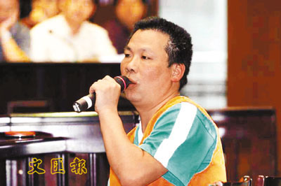 港漢尹×華在法庭上回答法官問話。 本報深圳傳真