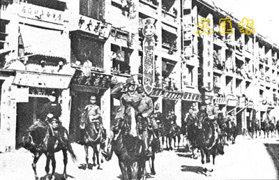 日軍攻陷香港後,列隊入城,經過皇后大道。(香港歷史資料圖片)