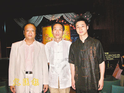 江蘇省錫劇團的主要演員周東亮(右)、團長王群(中)和導演俞克平。