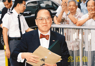 ■昨日行政長官答問大會前,約300多名為內地子女爭取居港權的家長及四五行動數名成員,在立法會門外請願。爭取居港權家長要求港府盡力提供協助,安排內地子女早日來港團聚。曾蔭權親自走到示威者面前,接過請願信件,還回頭向示威者揮手。