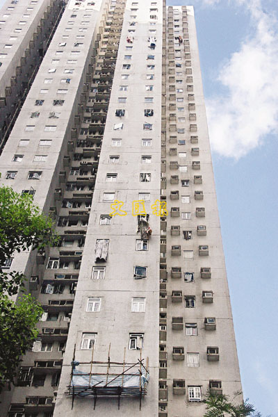 將軍澳安寧花園墮鋁窗居民掛衫在窗口。 蔣焯文 攝