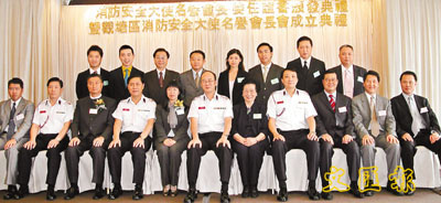 ■賓主於消防安全大使名譽會長委任證書頒發典禮暨觀塘區消防安全大使名譽會長會成立典禮上合影。鄭群 攝