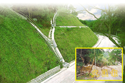 嶼南道近荔技園村的人造斜坡,綠化前(小圖)後(大圖)景觀分別甚大。