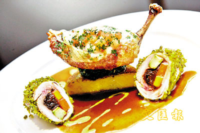 燒春雞卷鴨肝配甜酒汁 (圖)