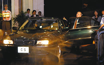 ■政務司司長許仕仁昨天晚上八時半坐CS車離開新辦公室。羅蘭蓉 攝