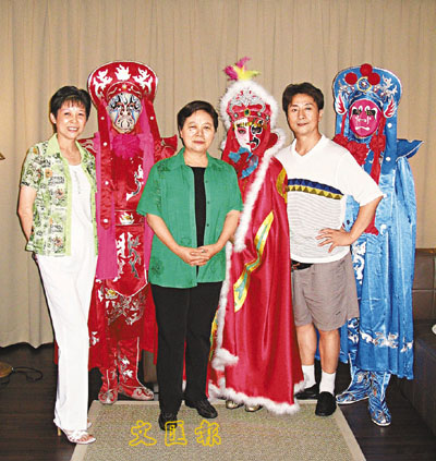 重慶川劇院22名演員來港表演川劇和變臉慶回歸。左起:重慶市文化局處長楊燕、劉智勇、王洪華、劉丹丹、張健平、封四海。 沈清麗 攝