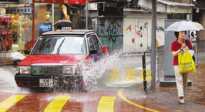 上環區地勢低窪,每逢大雨,路上積聚大量雨水,令路人不便。 張立新 攝