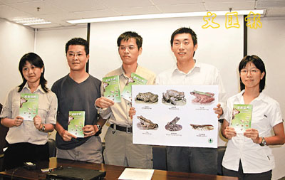一群鍾情青蛙的漁護署員工,研究兩棲類動物,並指「不肉酸,很可愛!」 羅敬文 攝