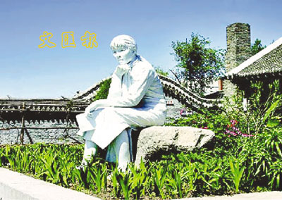 走出五間正屋,前方便是蕭紅坐在一塊大石頭上的乳白色石雕像。雕像邊積滿了白雪。蕭紅左手背托著下巴,沉思著:「世間死了祖父,就沒有再同情我的人了。」這讓我的感覺,頓時浸透著一種淒涼。
