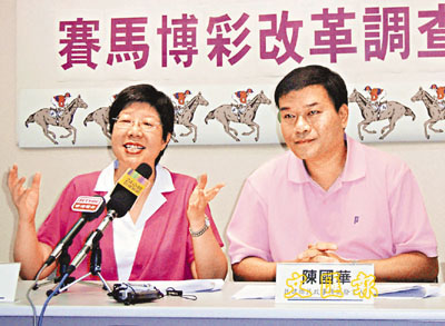 蔡素玉(左)質疑政府因外圍馬猖獗而改革博彩,(右)為民建聯民政事務副發言人陳國華。甄健輝 攝