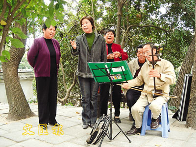 市民在公園內歌唱娛己娛人,內地隨處可見。 資料圖片