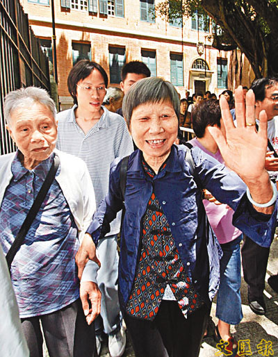 盧婆婆表示,自己心情平靜,好開心,有信心贏。不過當被記者問及萬一輸官司有何打算時,婆婆即時顯得一臉惘然:「輸鱈}繼續同搵居民開會,上訴到底囉!」「但係今次已經是終審法院,無得再上訴了喎?」記者說,不過婆婆一於少理,繼續大喊:「咁咪繼續開會,上訴到底囉!堅決不讓房委會賣我們家產囉、私有化囉!」接著便與在場人士大叫口號。