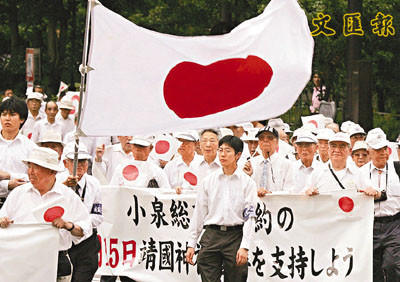 ■日本右翼請願支持首相小泉純一郎在8月15號戰敗紀念日參拜靖國神社。