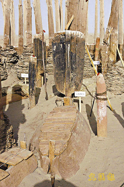 ■小河墓地中男性死者頭部前方的槳形立柱象徵女性生殖器,這表明「小河人」的極度生殖崇拜。