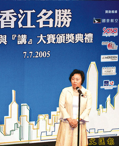 旅遊事務專員鄭汝樺昨出席香江名勝「導」與「講」大賽時發言。 梁偉雄 攝