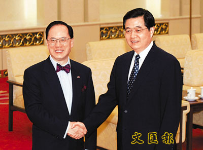 國家主席胡錦濤6月24日在北京人民大會堂會見前來宣誓就職的香港特別行政區行政長官曾蔭權。 資料圖片