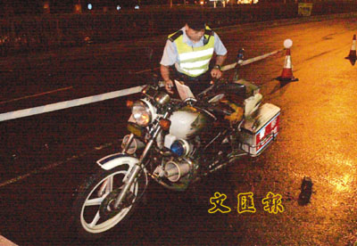 【本報訊】三十八歲姓葉警員,駕環頭「細馬」電單車沿鞍超街巡邏,至鞍駿街交界,疑機件過熱,電單車車底突然冒煙起火。葉立即停下及通知上峰,消防員到場迅即將火救熄,電單車僅輕微被燒毀。