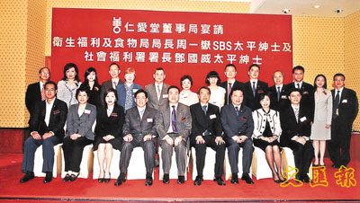 【本報訊】(記者 沈清麗)為加強仁愛堂與衛生及食物局和社會福利署之聯繫,以配合日後的服務發展方向,該堂日前宴請衛生及食物局局長周一嶽太平紳士、社會福利署署長鄧國威太平紳士及多位衛生及食物局和社會福利署官員,仁愛堂亦有多位董事局成員出席,雙方就現時的社會福利及醫療等政策問題作出深入的討論。主席龐維新於宴會上感謝衛生署食物局與社會福利署多年來對仁愛堂的鼎力支持、鼓勵和肯定;未來,仁愛堂將配合各政府部門的政策,致力為市民提供多元化的醫療、福利、教育及康體等服務,並加強彼此間的合作和溝通,令社會上更多有需要人士受惠。當日出席的官員還包括衛生署及食物局副秘書長何淑兒、副秘書長甄美薇、署理副秘書長鄭琪,以及社會福利署助理署長吳馬金嫻、馮伯欣、韓潔湘、簡何巧雲及蔣慶華等。而出席之仁愛堂董事局成員還有副主席:張心瑜、史立德、王政皓。