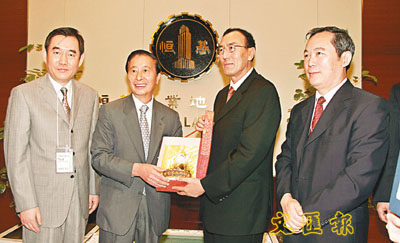 得知李兆基父子篤信佛教,代表團特別向李兆基致送一尊在西藏開光的佛像,而李氏則以梁鳳儀撰寫的《李兆基博士傳記》一書作為回禮,並一盡地主之誼,宴請來賓。