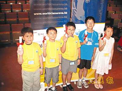 來自香港(左三位)和內地(右兩位)的小學生進行數學競賽,成績不相伯仲。 曾媚 攝