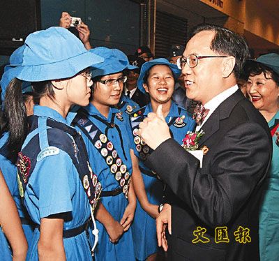 曾蔭權為將赴內地的制服團體成員打氣。 張立新 攝