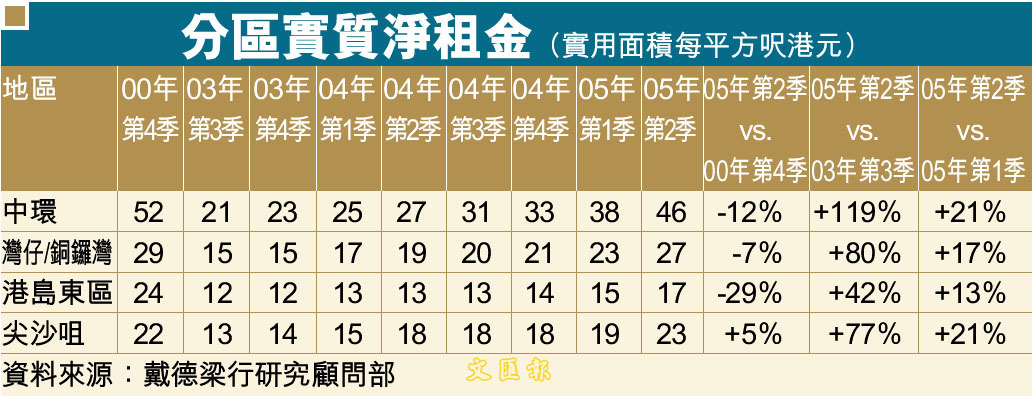 中區商廈斷層租金漲幅大 (圖)