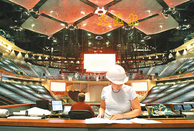 ■體育館內工作人員正設計新的裝潢,為傳播福音作好準備。