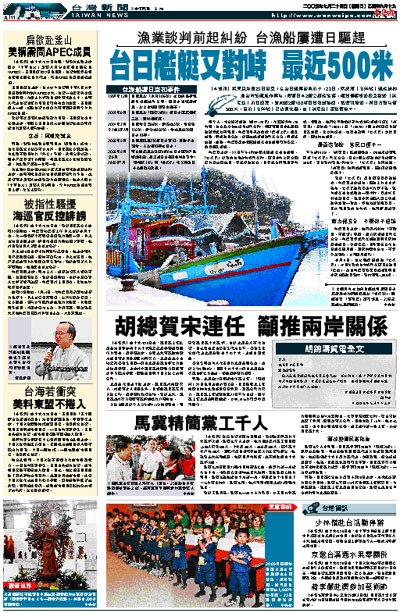 本月9日,台北縣深澳漁船「名洋號」,才因在釣魚台海域作業遭日方船艦「監控」,後由海巡署欽星艦戒護並與日本保安廳船艦對峙,對峙距離1,000米。