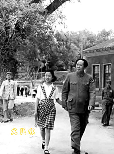 ■毛澤東與李訥在中南海散步。資料圖片