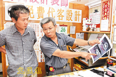 事主展示其侄兒遇車禍慘死的現場照片,講述事件經過。