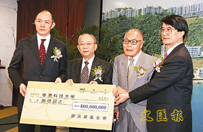 霍英東早於98年已開始與科大合作,例如在南沙設立資訊科技園等,期間「斷斷續續」向科大捐贈2億元,若加上今次的8億元,捐款總額便達10億元,足以媲美李嘉誠的10億元捐獻。