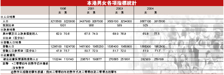 [2005-07-29] 本港男女各項指標統計