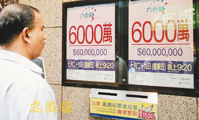 6,000萬元六合彩今晚開獎。 趙焜崗 攝
