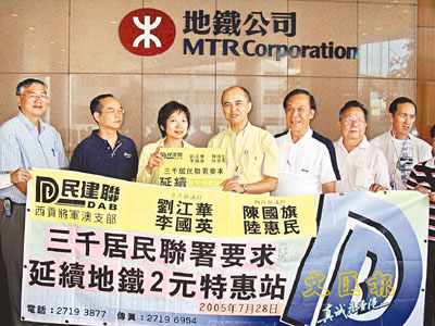 [2005-07-29] 民建聯促地鐵延長票價優惠 放大圖片
