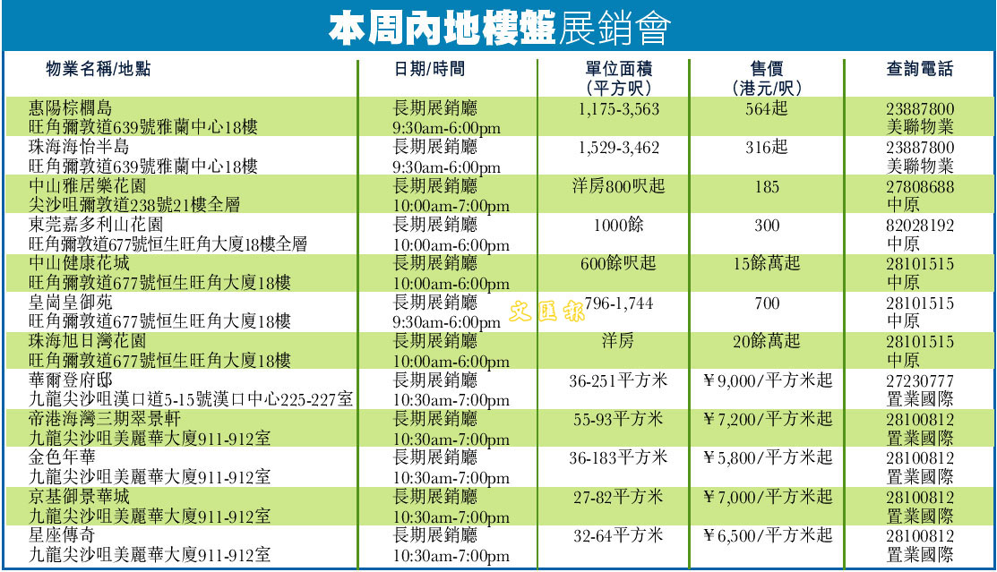 本周內地樓盤展銷會 (圖)
