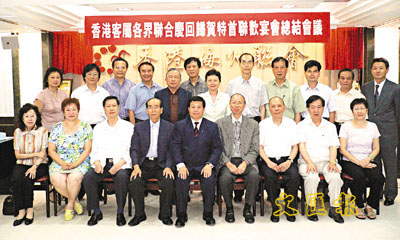 【本報訊】(記者 鄭群)30多個客屬社團首長和代表假座香港梅州聯會會所,舉行了本月13日聯合舉辦的「香港客屬各界慶祝香港特別行政區成立8周年暨祝賀曾蔭權膺任行政長官聯歡宴會」的總結會議。