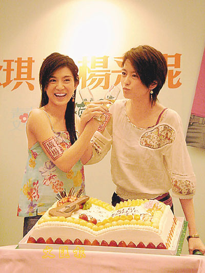 【本報訊】(記者 李慶全)梁詠琪(Gigi)與楊采妮(Charlie)最近合作推出新書《交換成長日記》,以交換日記形式向讀者透露她們鮮為人知的成長秘密和趣事。昨午舉行新書分享及簽名會,吸引到大批Fans到場,原先安排的一百個籌派完,臨時要多派發二十個籌來滿足Fans。Gigi和Charlie協議好會將新書的全部版稅捐給聯合國兒童基金會作慈善用途。而新書面世,兩位好姊妹一齊開香檳及砌蛋糕慶祝,還作狀交杯。