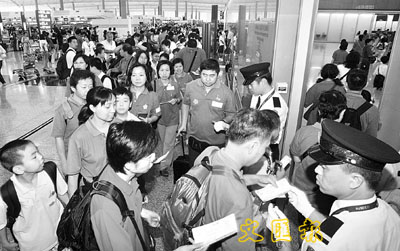 香港學生參加內地航天培訓營,於機場準備出發。 劉國權 攝