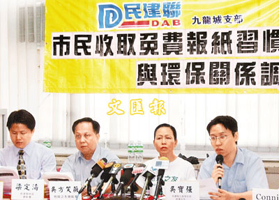 民建聯上周訪問了1006名市民,56.9%受訪市民表示會索取和接受免費報紙,當中有近4成市民會選擇收取兩份或以上的免費報紙。不過,表示會將讀後的免費報章放入回收箱的市民只有32.4%。負責調查工作的民建聯九龍城支部地區總幹事梁定濤認為,派發免費報紙與浪費紙張並無直接關係,關鍵是回收的措施和公眾教育是否足夠。
