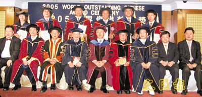 【本報訊】(記者 鄭群)由世界華商投資基金會主舉的「2005世界傑出華人獎」頒獎典禮,日前假尖沙咀東部海景嘉福酒店舉行。教統局局長李國章、鄉議局主席劉皇發、著名作家查良鏞,美國國際交流委員會主席陳香梅等12位社會知名人士獲頒世界傑出華人獎榮銜,以表揚他們對世界各地華人社會所做出的貢獻。