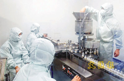 ■四川大批量生產豬鏈球菌2型滅活疫苗。圖為中牧實業股份有限公司成都藥械廠的工作人員,在生產豬鏈球菌2型滅活疫苗。 新華社