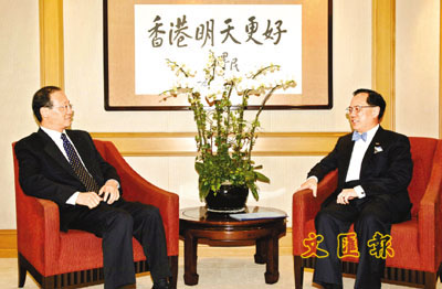 國家旅遊局局長邵琪偉(左)昨禮節性拜訪行政長官曾蔭權,就兩地在旅遊方面合作交換意見。