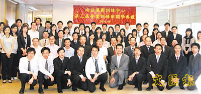 ■林樹哲等高層與訓練班學員合影。 鄭群 攝