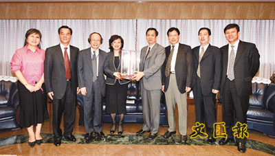 【本報訊】(記者 沈清麗)泉州市委書記鄭道溪、代市長朱明、秘書長李冀平等一行10人,昨日專程訪問本報,受到本報副社長劉永碧、總編輯王伯遙、拓展策劃部總經理張錦川等的熱烈歡迎,雙方進行了親切交談。鄭道溪書記甫見劉永碧副社長,便感謝本報對泉州的支持,以及本報對福建經濟建設所作的貢獻,為雙方建立了深厚的友誼。會面期間,鄭書記亦談到泉州近年的城市建設發展情況以及今次來港招商的目的。他又指出,泉州目前正從紡織、建築建材、食品飲料、工業製造等這些傳統工業,轉向新的工業例如石油化工、輪船造船、汽車配件、電子通訊產品以及旅遊業等。