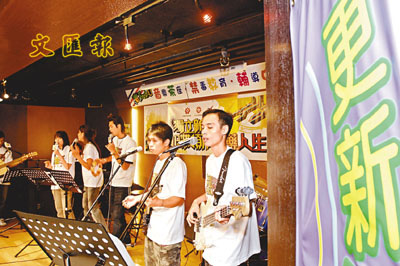 在昨日的禁毒活動上,濫藥康復者組成的「得生團契Band隊」唱出多首勵志歌曲,鼓勵年青人不要受毒品誘惑。 李志樑 攝