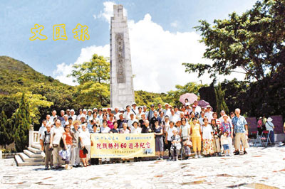 ■中業校友會、香港勞校校友會在西貢斬竹灣抗日烈士紀念碑前紀念抗戰勝利60周年。