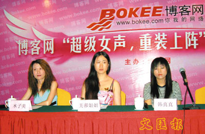 由博客網主辦的「超級女聲 重裝上陣」比賽新聞發佈會日前在北京舉行,備受中國內地網民關注的「網絡紅人」木子美、芙蓉姐姐、流氓燕、竹影青瞳等共同出席新聞發佈會。