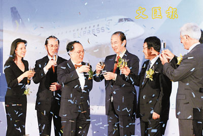 曾蔭權及何鴻燊出席港聯航空成立酒會。羅蘭蓉 攝
