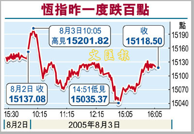 [2005-08-04] 恆指昨一度跌百點