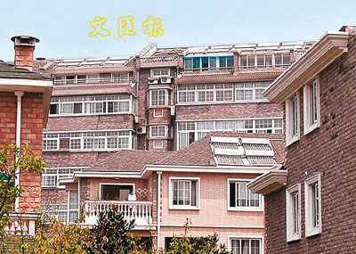 棲月苑小區內住宅屋頂的嵌入式太陽能熱水器。